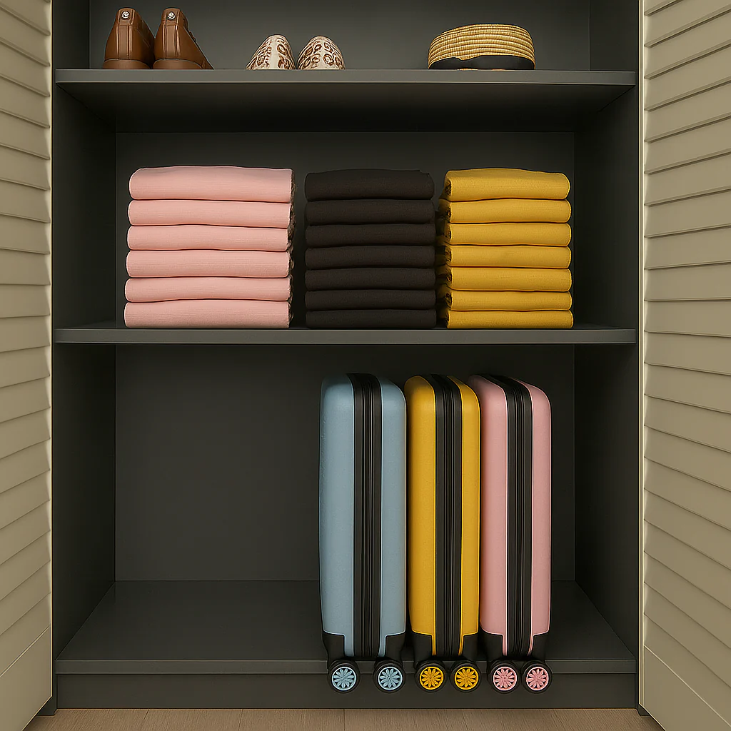 המזוודה מתקפלת לעובי של 12 ס"מ בלבד, מה שהופך אותה לפתרון מושלם לאחסון חכם ולשימוש כמזוודה נוספת לנסיעות ושופינג בחו"ל. ניתן להכניס אותה בקלות למזוודה גדולה יותר, וכשפותחים אותה – מתקבלת מזוודת טרולי מרווחת לעלייה למטוס בנפח של 40 ליטרים.