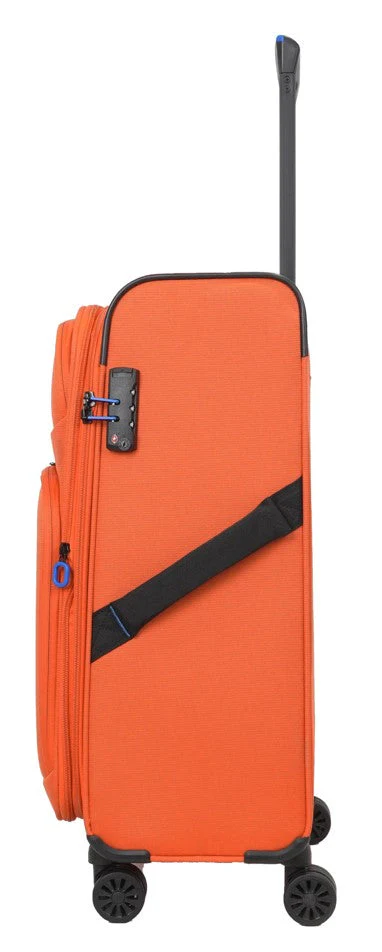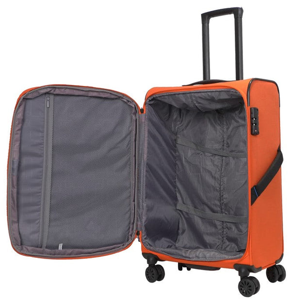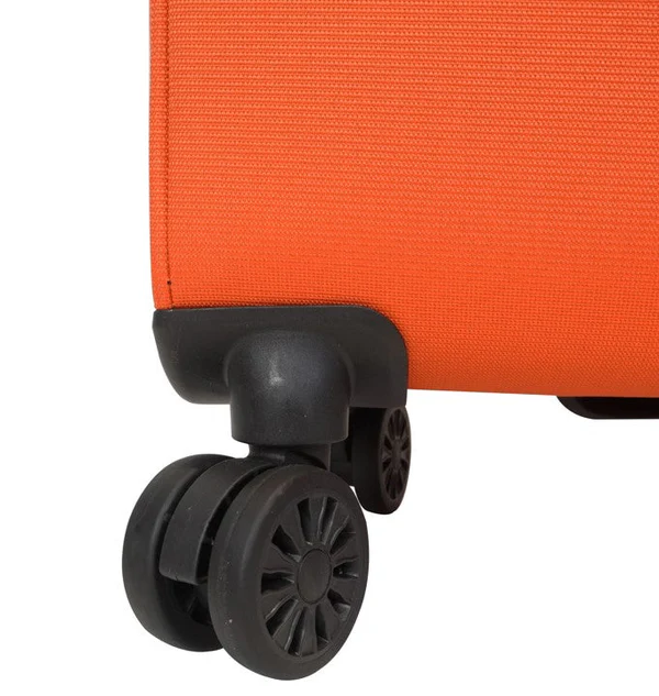 המזוודה עשויה פוליאסטר בצפיפות גבוהה עם תפרים מחוזקים, ובשילוב גוף פנימי יצוק לחוזק ויציבות משופרים. היא כוללת 4 גלגלי PU כפולים איכותיים לנסיעה חלקה ויציבה ב־360 מעלות (ספינר), כך שקל מאוד להתנייד איתה גם במעברים צפופים ובשדות תעופה.