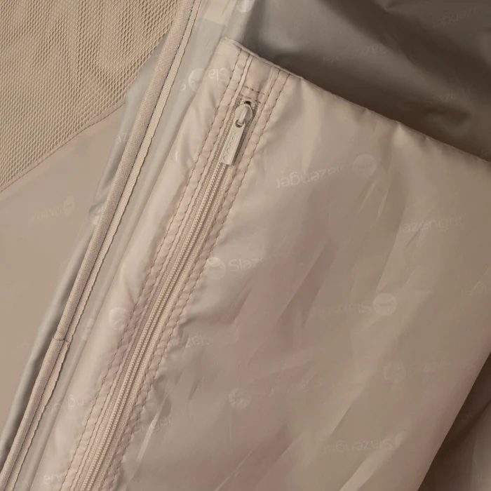 המעטפת עשויה בד פוליאסטר צפוף שמסייע בהתמודדות עם לחות והתזות, והמבנה כולל פרטים שמותאמים לשינוע בשדות תעופה – כמו הגנות תחתונות להפחתת שחיקה. לנוחות אחיזה והעמסה יש ידיות נשיאה במיקומים שימושיים, כולל ידית תחתונה שמקלה על הרמה למסוע או לתא מטען.