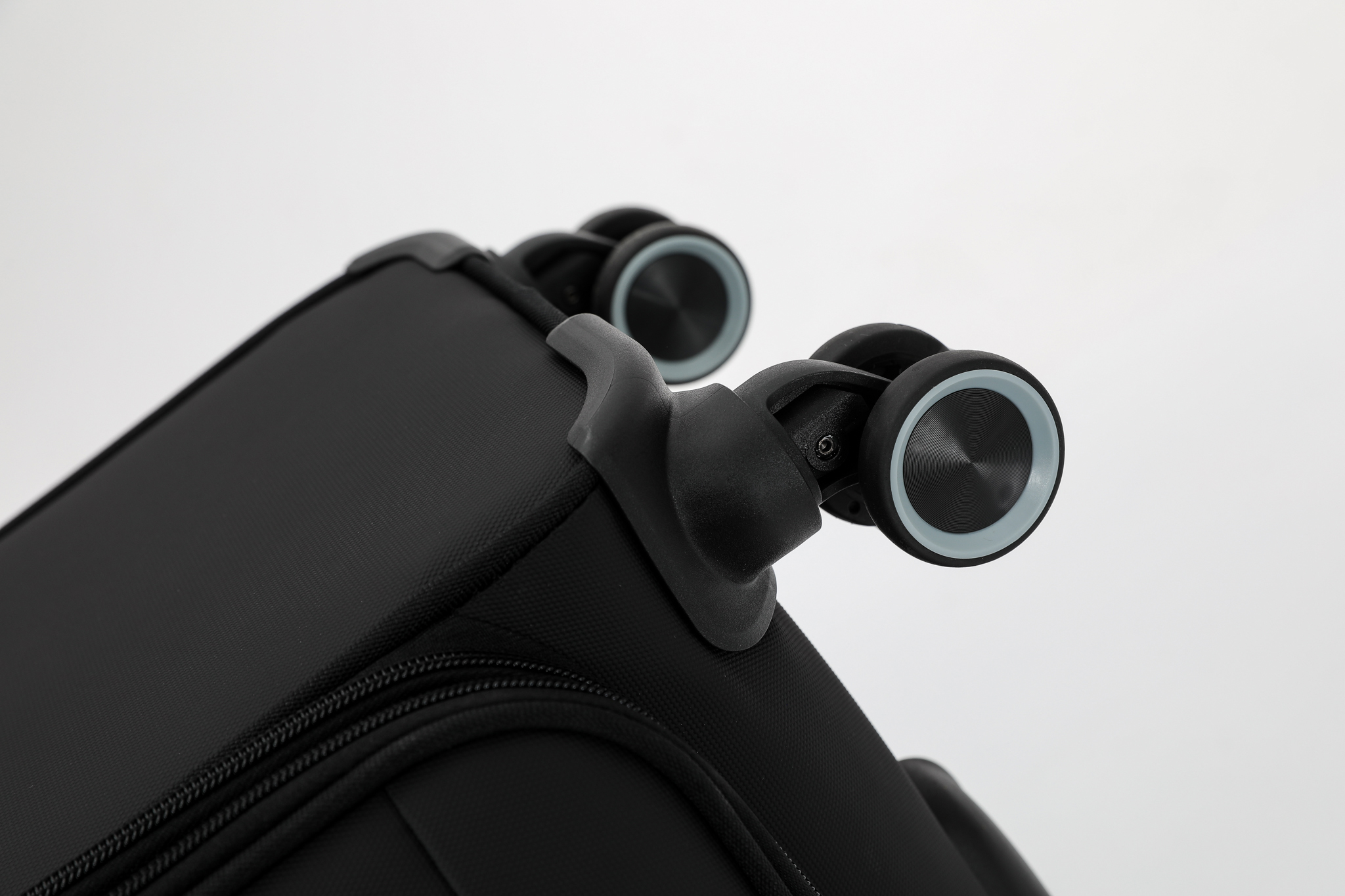 המזוודה מצוידת במערכת גלגלים כפולים עם בולמי זעזועים המאפשרים סיבוב חלק של 360°, ידית טלסקופית קלה לשליפה ו־שלוש ידיות נשיאה לנוחות הרמה מכל כיוון.