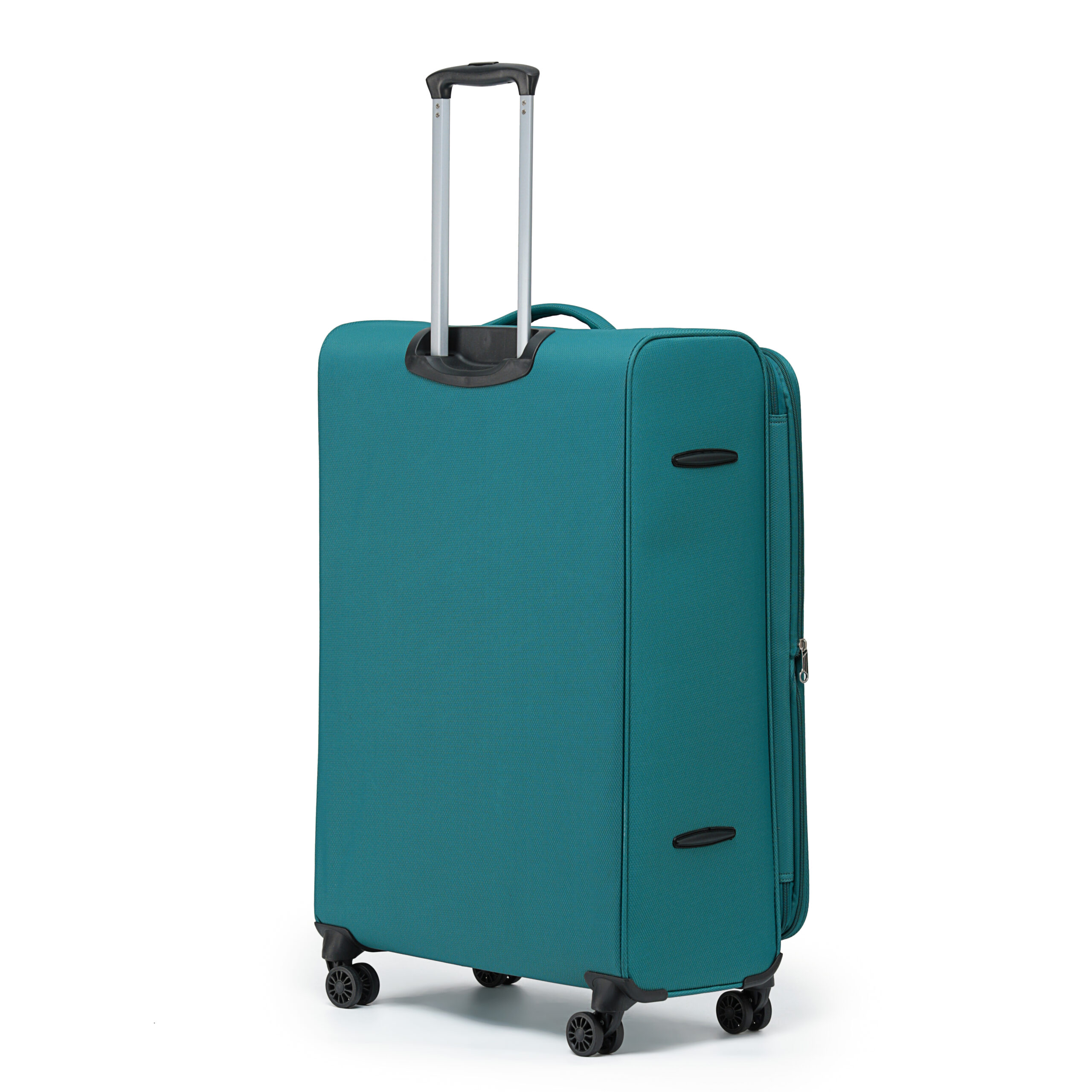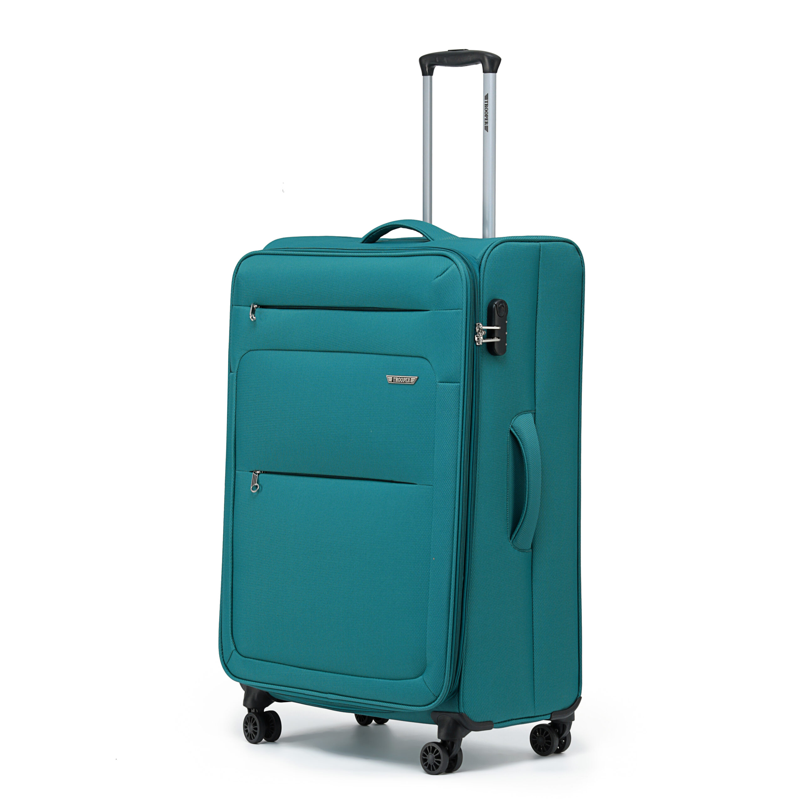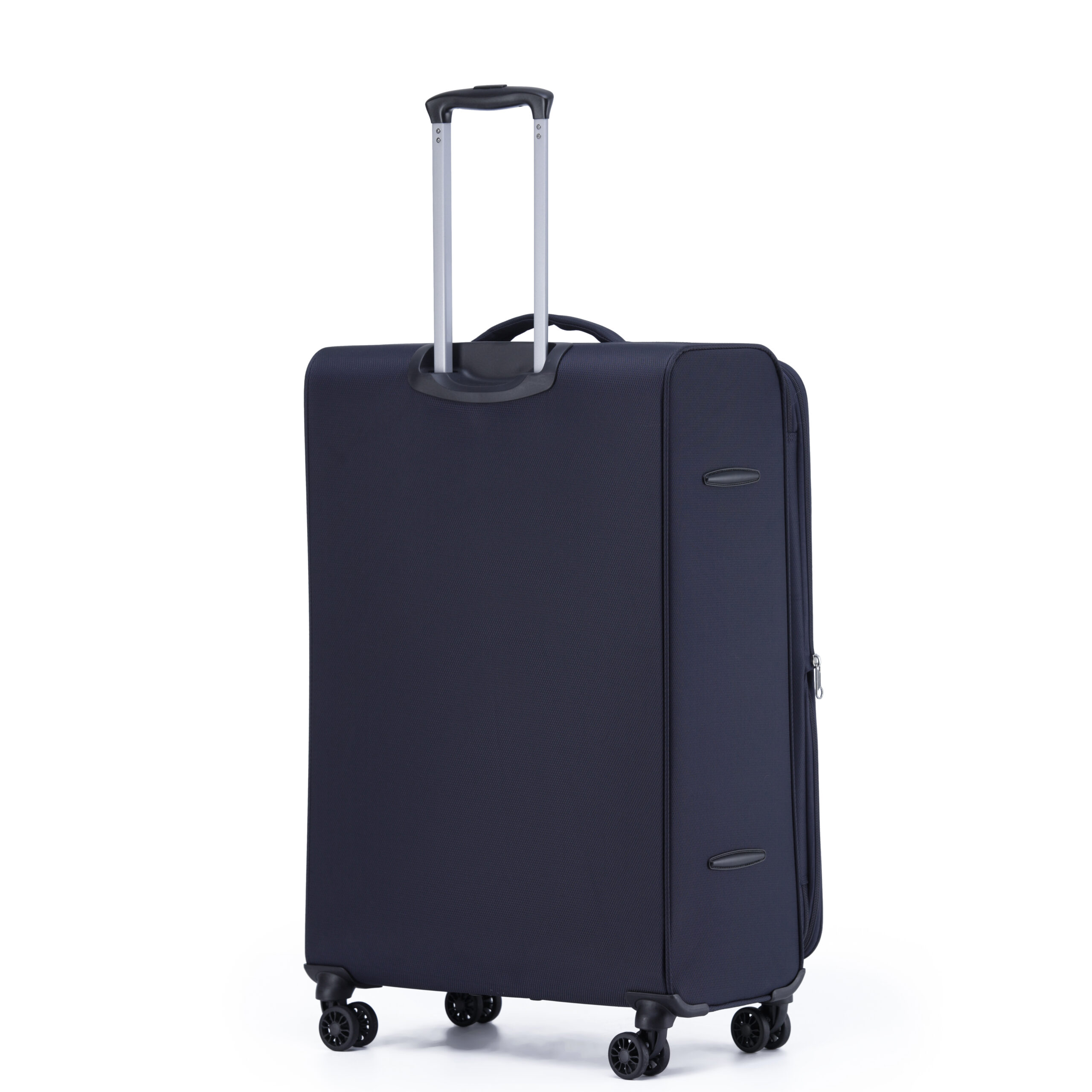 מזוודת בד גדולה 28" מדגם LONDON – עשויה פוליאסטר איכותי, חזק ועמיד, עם 4 גלגלים כפולים 360°, ידית טלסקופית קלת משקל, מנעול קומבינציה מובנה, תאי אחסון חכמים ורוכסן הרחבה להגדלת נפח האחסון. פתרון נוח, פרקטי ואמין לנסיעות ארוכות.