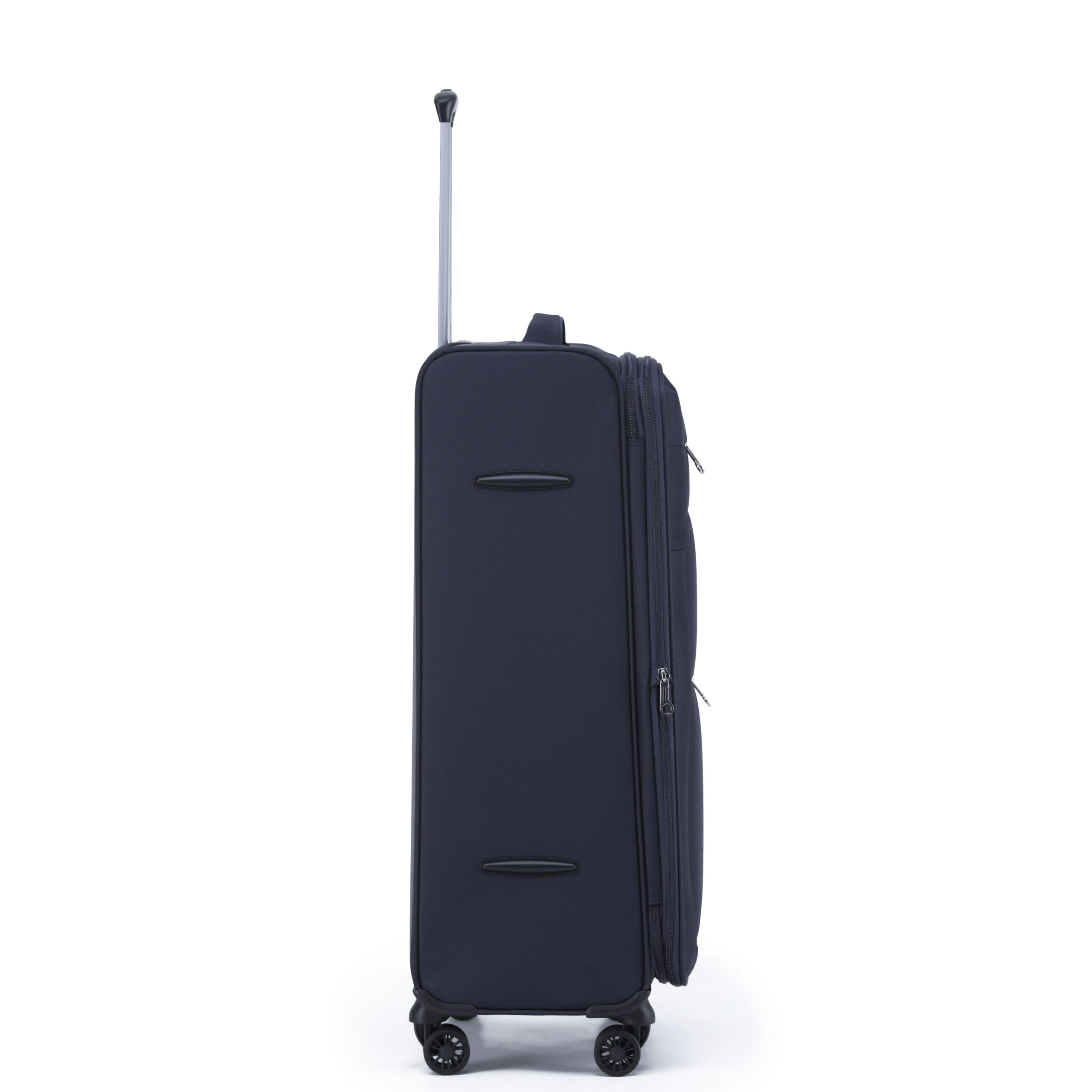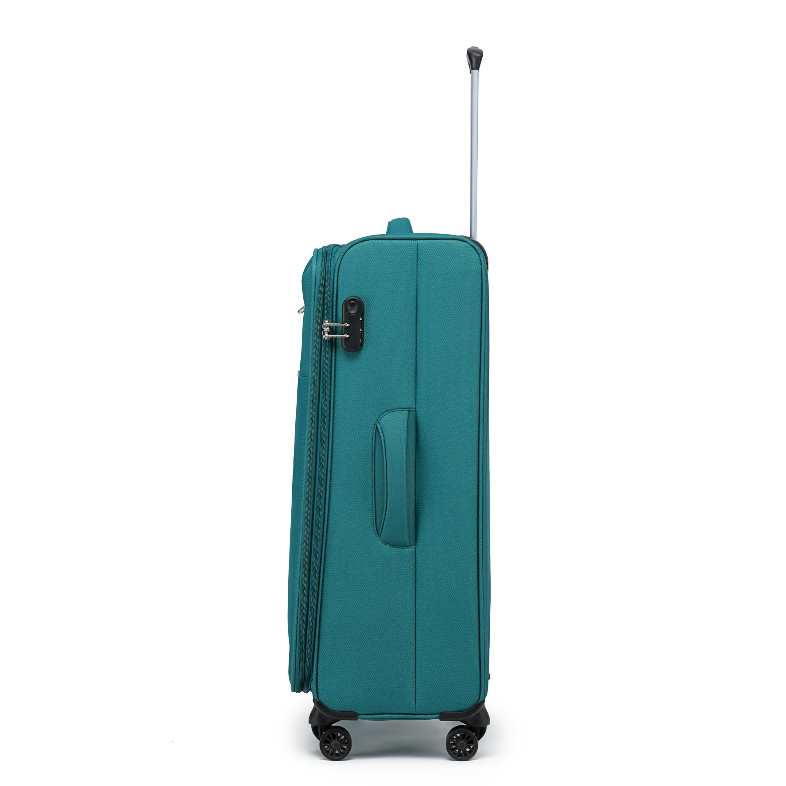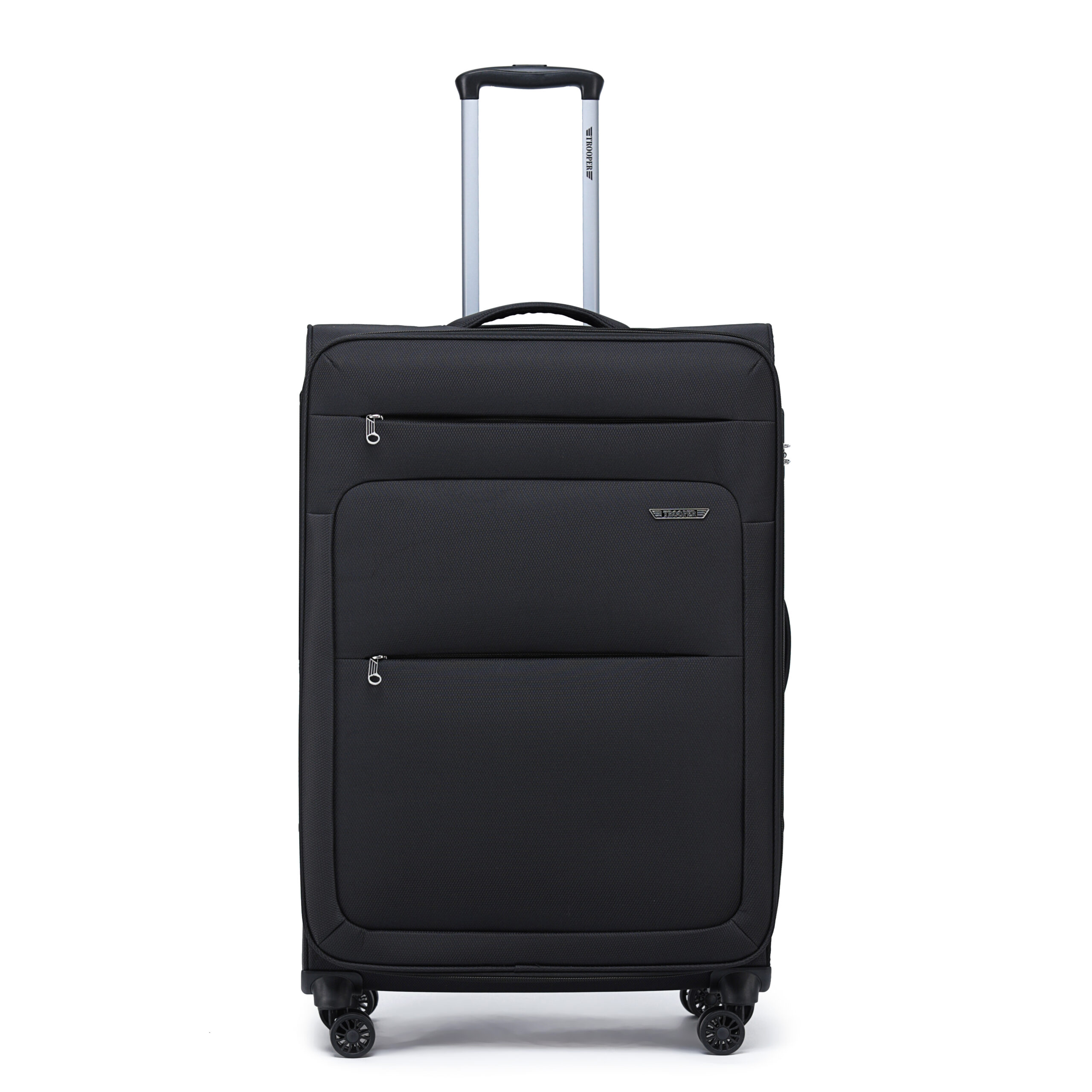 מזוודת בד גדולה 28" מדגם LONDON – עשויה פוליאסטר איכותי, חזק ועמיד, עם 4 גלגלים כפולים 360°, ידית טלסקופית קלת משקל, מנעול קומבינציה מובנה, תאי אחסון חכמים ורוכסן הרחבה להגדלת נפח האחסון. פתרון נוח, פרקטי ואמין לנסיעות ארוכות.