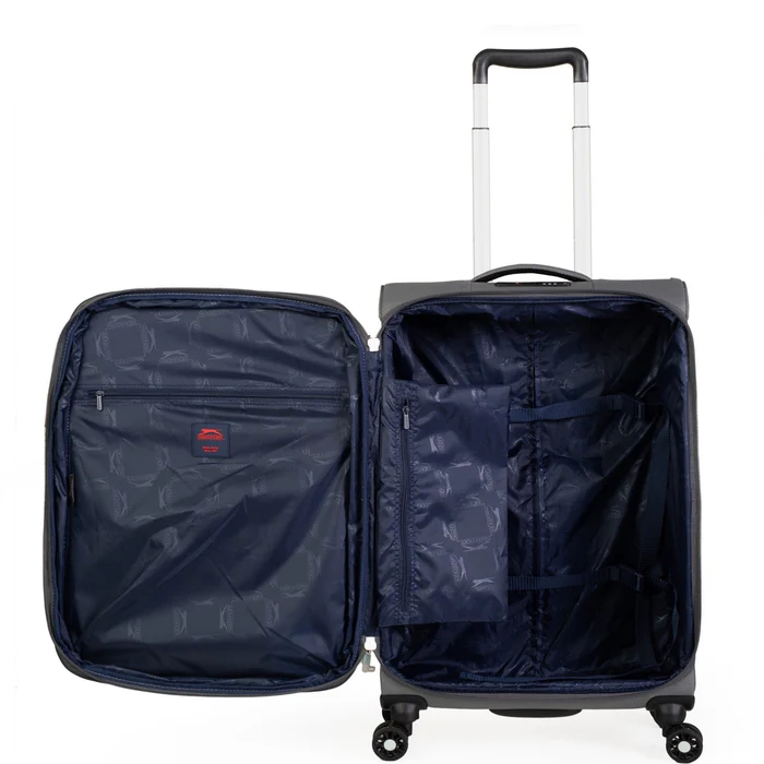 לנסיעה נוחה תקבל 4 גלגלי סיליקון כפולים שמספקים תנועה חלקה, יחד עם ידית טרולי מאלומיניום בכמה מצבים להתאמה נוחה לגובה. לצורכי אבטחה יש מנעול TSA מובנה ורוכסן מרכזי מחוזק. מבחינת ארגון—יש שני תאים חיצוניים גדולים לשליפה מהירה, ובפנים תאים בסגירת רוכסן לאורך הדופן, כולל תא ייעודי לכלי רחצה.