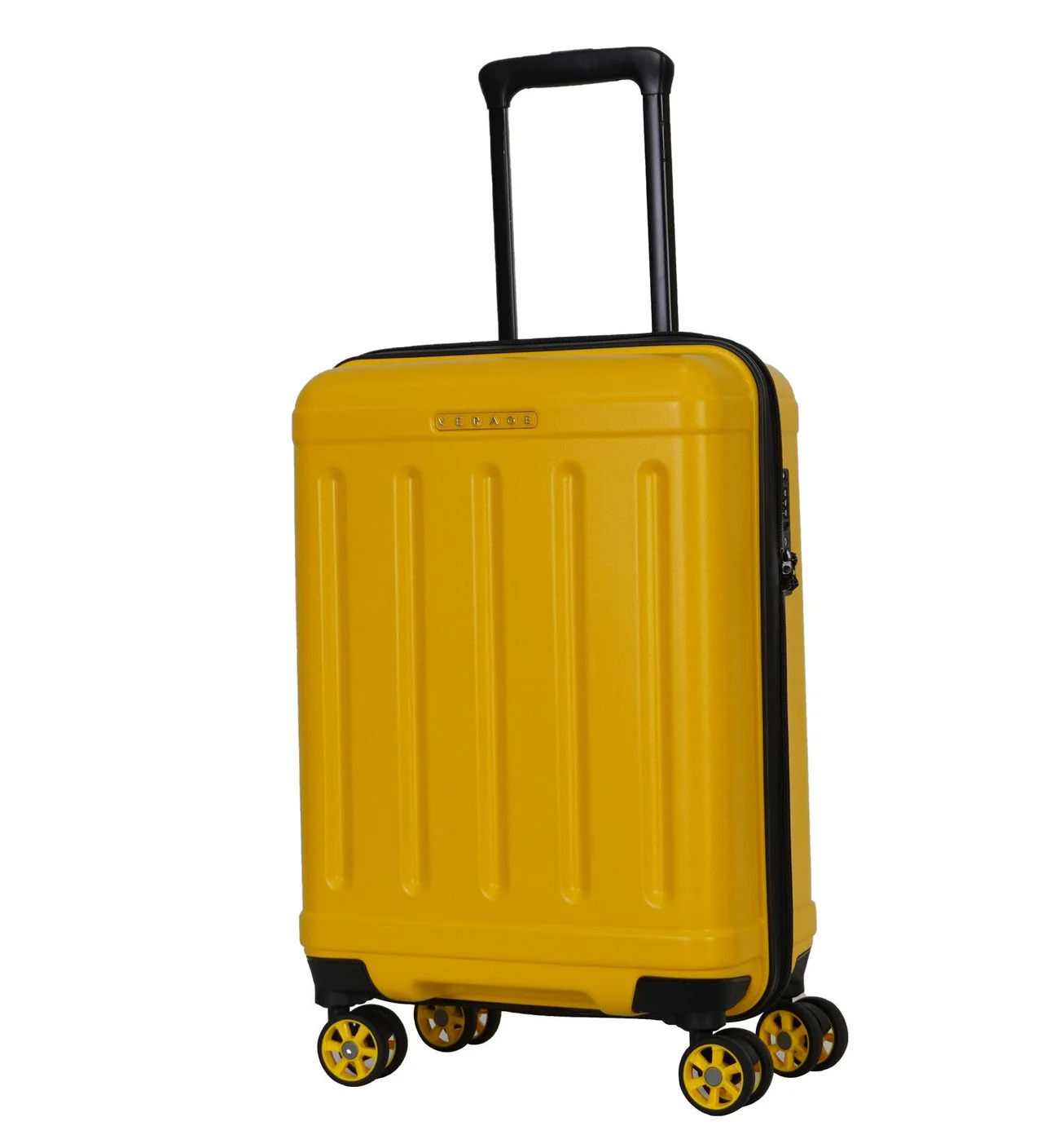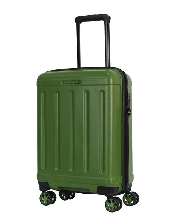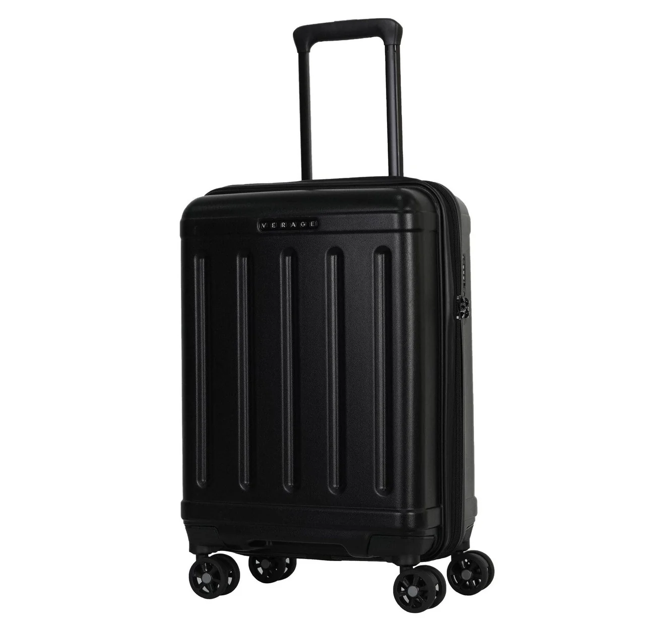 מזוודת טרולי קשיחה 19 אינץ׳ לעלייה למטוס מבית VERAGE אנגליה, דגם GENOVA מהקולקציה החדשה. המזוודה משלבת עיצוב יוקרתי עם טקסטורת פסים מרשימה יחד עם פונקציונליות מתקדמת לנוחות מקסימלית בנסיעות.