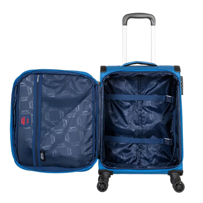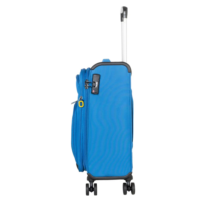 טרולי 19״ מסדרת New York II: קל ונוח לעלייה למטוס, עם שרוול הלבשה אחורי, תאים קדמיים לשליפה מהירה, הרחבת נפח, מנעול TSA, גלגלי סיליקון כפולים 360° ובד Super Light דוחה מים. אחריות 3 שנים.