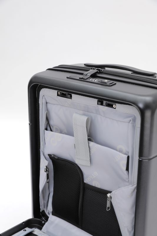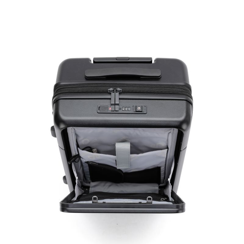 מזוודת טרולי אלגנטית ומתקדמת במידה תקנית לעלייה למטוס (20″), המשלבת עיצוב יוקרתי עם פונקציונליות חכמה. המזוודה מתאימה במיוחד לנסיעות עבודה ולנוסעים המחפשים נוחות, סדר וגישה מהירה לציוד האישי.