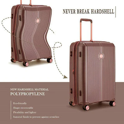 סט 3 מזוודות קשיחות, חזקות ועמידות במיוחד, עשויות פוליפרופילן (PP) גמיש וקל משקל. כולל 3 גדלים שימושיים (20"/24"/28"), רוכסן הרחבה עד כ־20% בכל המזוודות, גלגלי סיליקון כפולים 360°, ומנעול TSA מובנה – לנוחות, בטיחות ואריזה מקסימלית בכל נסיעה.