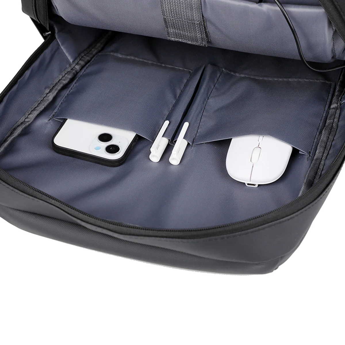 תיק גב מודרני ואלגנטי למי שמחפש שילוב מושלם של סדר, נוחות וטכנולוגיה. בעל עיצוב מרובע נקי שמתאים לעבודה, ללימודים ולנסיעות, עם חלוקה פנימית חכמה לשמירה והגנה על הלפטופ והציוד האישי. אידיאלי לשימוש יומיומי, לנסיעות עבודה ולטיסות.