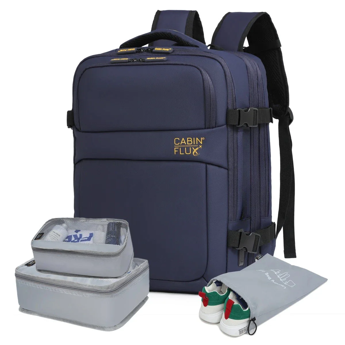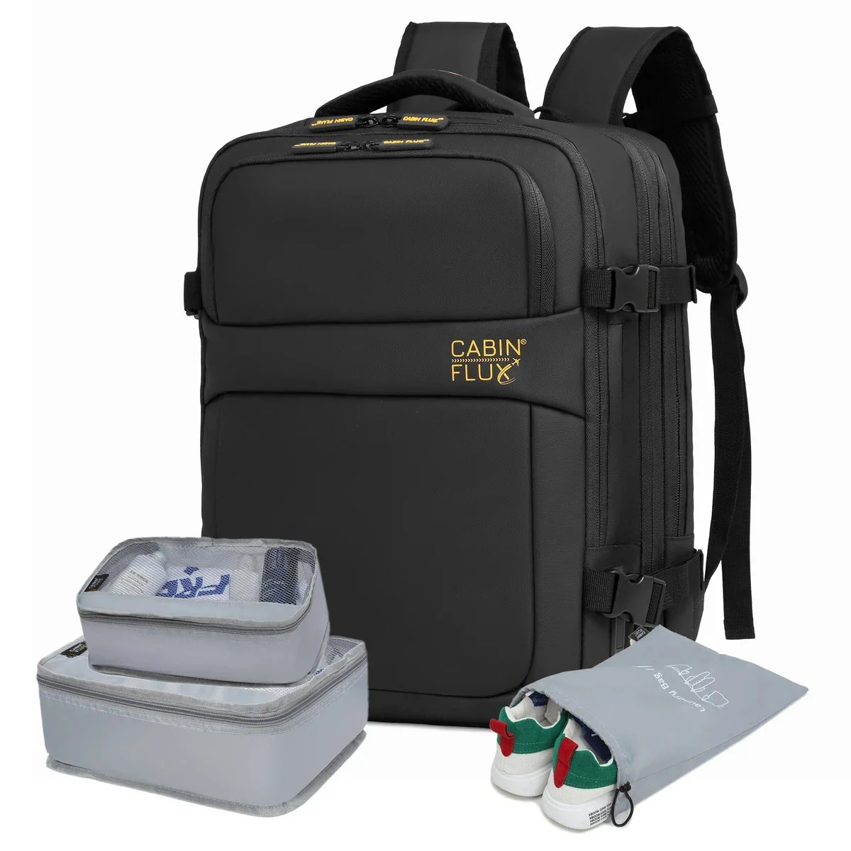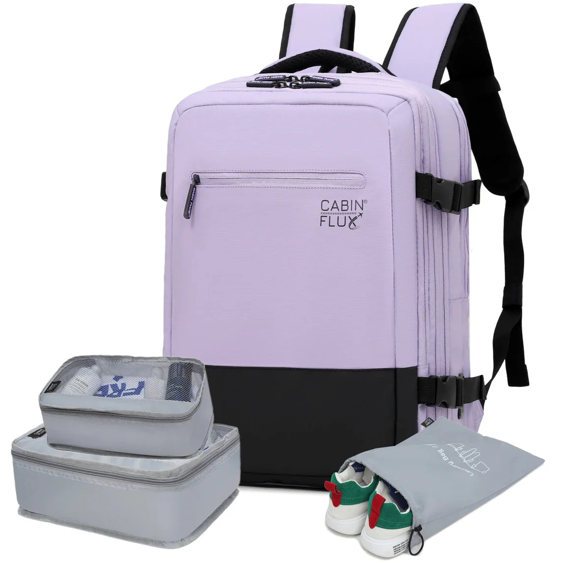 תיק העלייה למטוס Iconic™ מבית CABIN FLUX כולל קוביות אריזה, ומשלב איכות, נוחות ועמידות ברמה גבוהה.